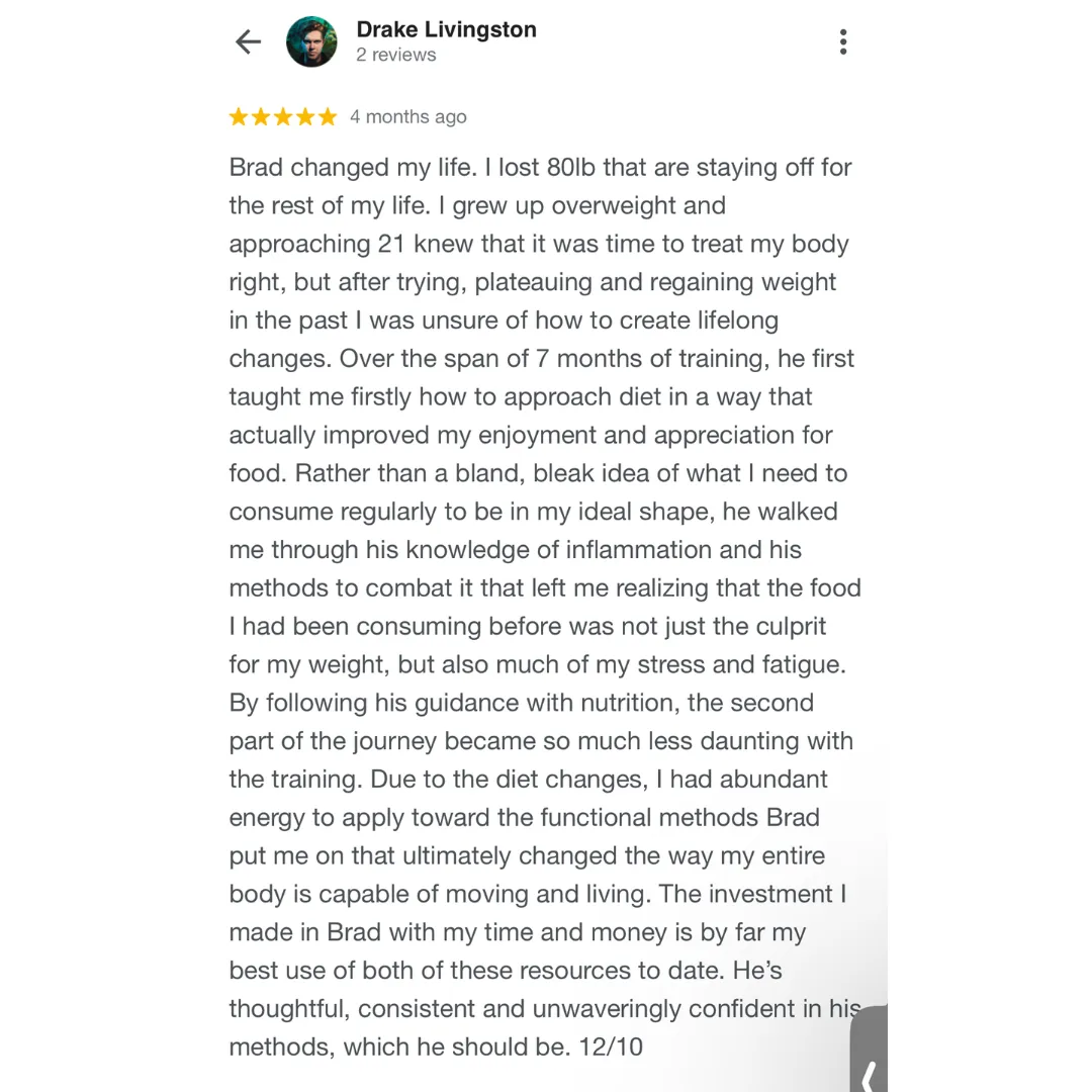 The investment Drake made in my coaching program was not just a temporary fix; it laid the foundation for a lifetime of better health and well-being. I’m immensely proud of his commitment and thrilled to have played a part in this transformative journey.